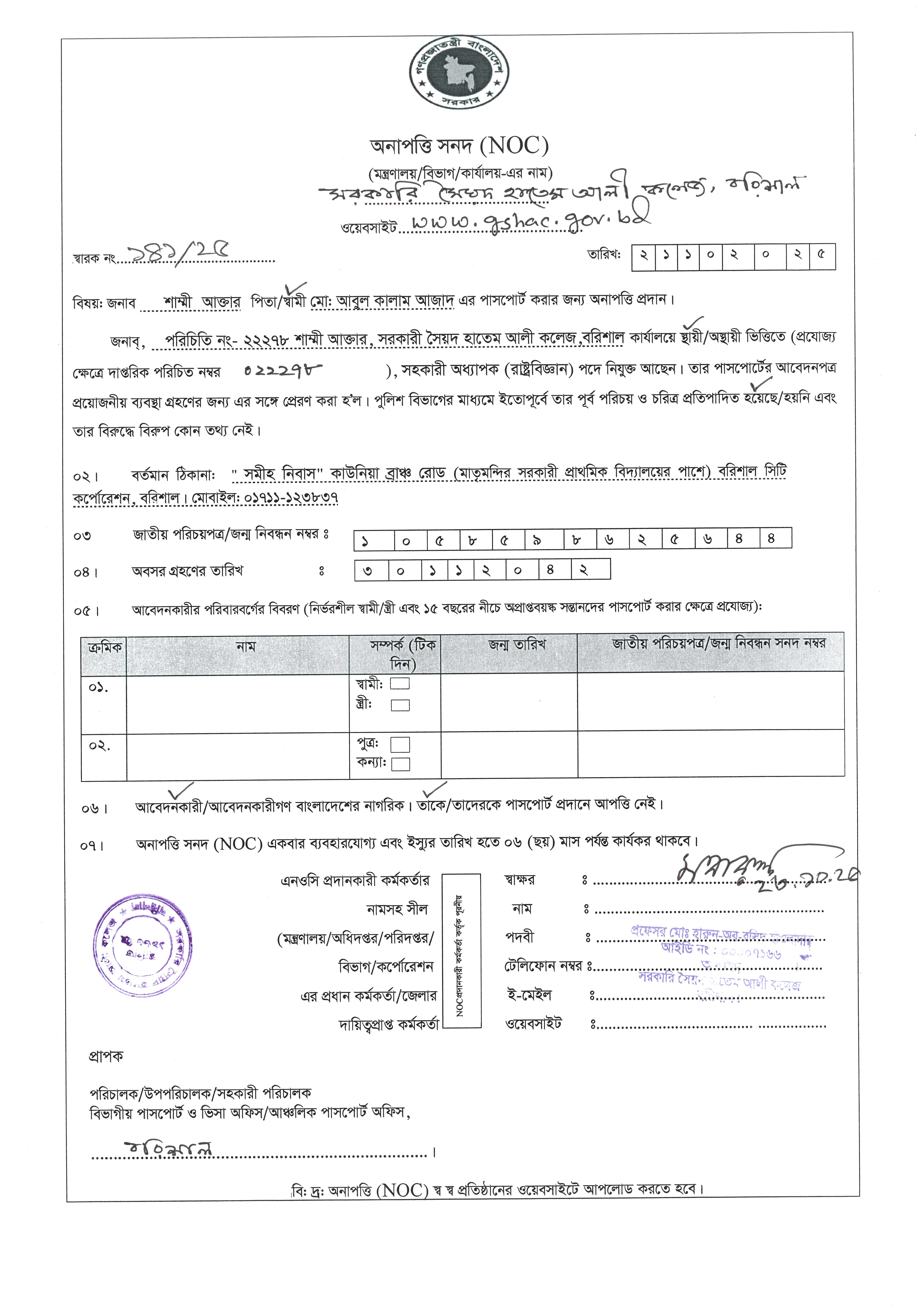 জনাব মোঃ জাহিদুল ইসলাম, প্রভাষক, উদ্ভিদবিদ্যা’র অনাপত্তি সংক্রা্ন্ত |